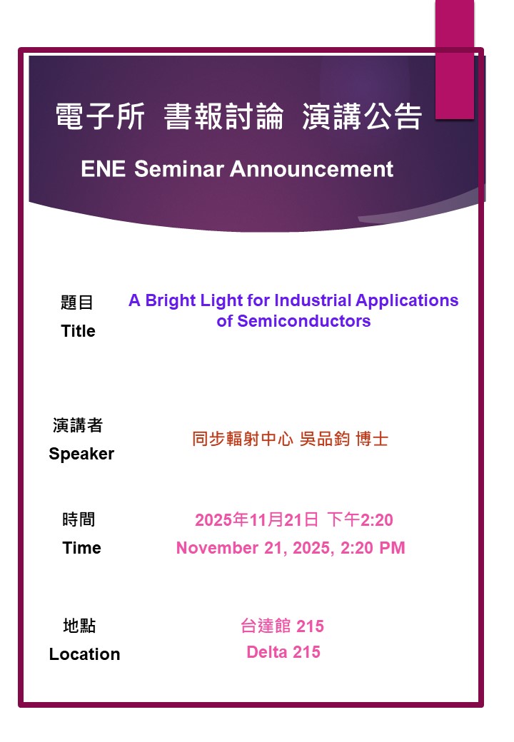 114/11/21(五)演講公告: A Bright Light for Industrial Applications of Semiconductors