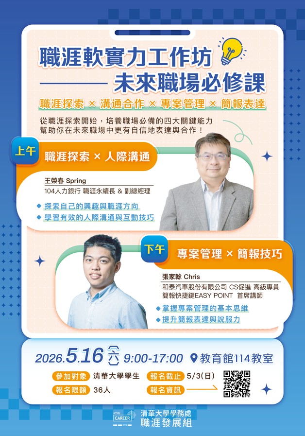 【公告】職涯軟實力工作坊—未來職場必修課!